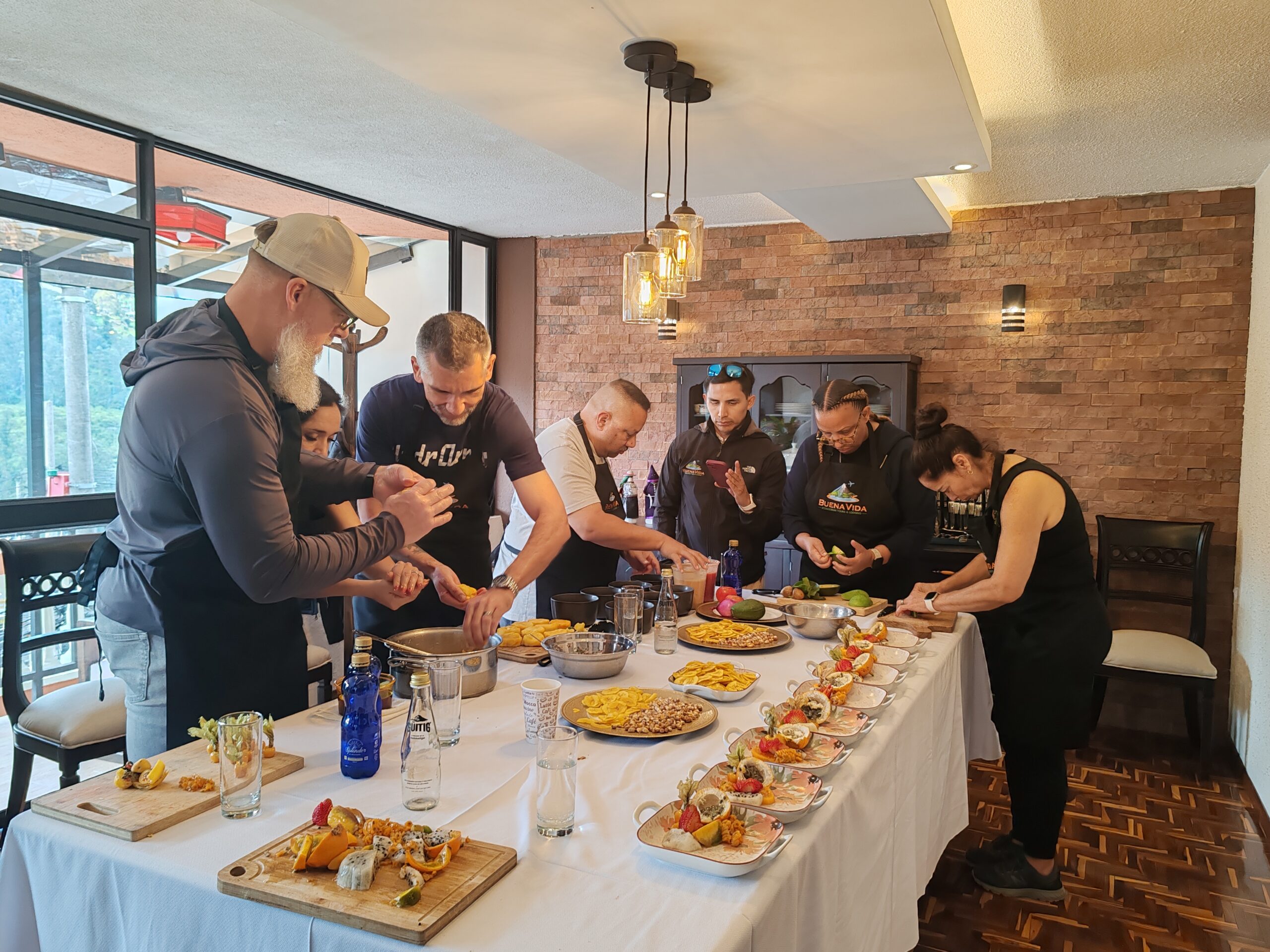 The trip combines culture, nature, and well-being. It includes a visit to the Middle of the World (Mitad del Mundo), the Quito cable car (Teleférico), and a colonial tour with a cooking class. It continues with an excursion to the Antisana Reserve and relaxation at the Papallacta hot springs, followed by a full day of spa and nature. It concludes with a visit to the BuenaVida Guesthouse to learn about its sustainable tourism project.